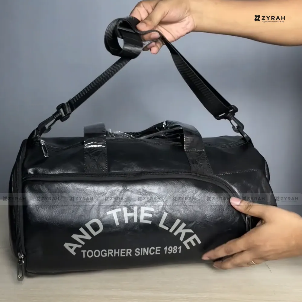 PU Leather Duffel & Gym Bag with Shoe Compartment – Black